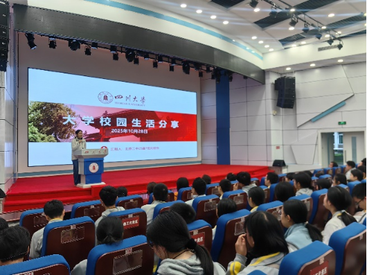 副院长李峰教授以“川越精彩,大有可为”为主题,为同学们带来了一场深入浅出的讲座。他系统介绍了川大的学科优势、科研成果与校园文化,阐释了大学教育的意义与价值,激发了同学们对高等教育的浓厚兴趣,也为他们的学业规划提供了有益指导。随后,毕业于北京二中、现就读于四川大学国关学院的刘佳怡同学,与学弟学妹们分享了入学两个月来大学校园生活,从适应新环境到参与社团活动,再到专业学习的探索,她的真诚分享让高中生们对大学生活有了更直观的理解,也激励大家珍惜当下,为梦想不懈努力。